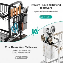 Swedecor Dish Drying Rack, 2 Tier Rust-Resistant Dish Rack Small Dish Drainer with Drainboard Tray and Utensil Holder for Kitchen Countertop Saving Space, Black